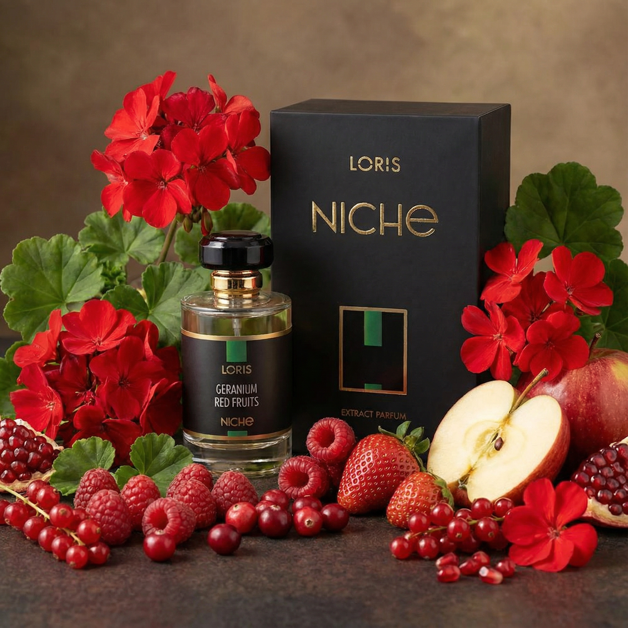 عطر Loris Niche Geranium Red Fruits Extract Parfum رایحهای مدرن و جذاب بر پایه میوههای قرمز و گل شمعدانی (Geranium) است که حسی شاداب، انرژیبخش و در عین حال ظریف و شیک ایجاد میکند. در اولین لحظات اسپری، بوی شیرین و آبدار میوههای قرمز فضایی خوشبو، سرزنده و کمی ترشوشیرین میسازد؛ رایحهای که یادآور ترکیبی از انواع بریها و میوههای قرمز رسیده است.